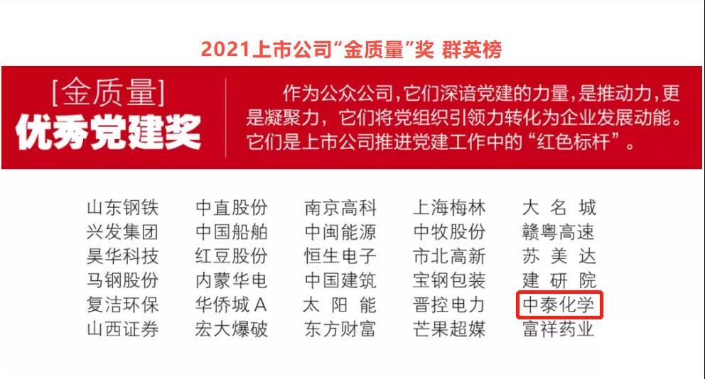 中泰化學(xué)榮獲2021上市公司“金質(zhì)量”優(yōu)秀黨建獎