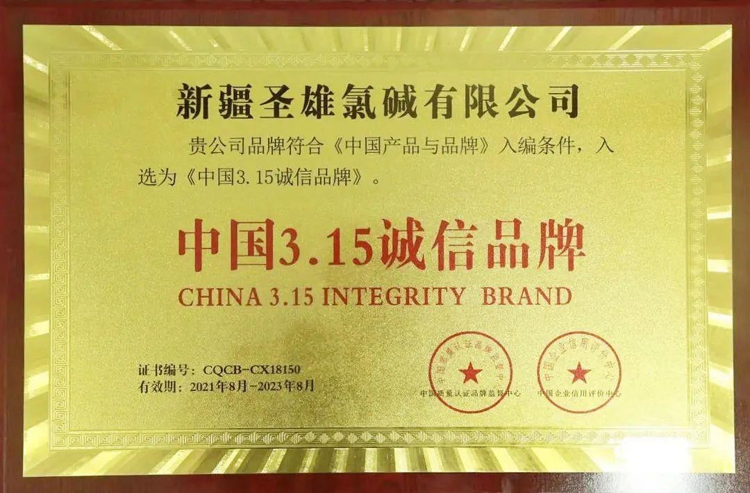 圣雄能源氯堿廠(chǎng)榮獲“中國(guó)3·15誠(chéng)信品牌”榮譽(yù)稱(chēng)號(hào)