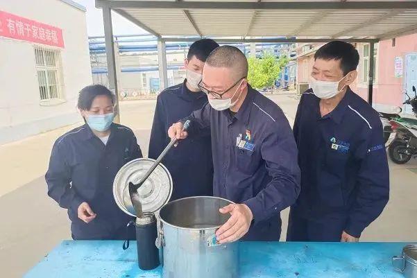 ? ?深入基層想員工所需,酷暑送清涼周到又貼心。“今天的午餐多了綠豆湯?!?中午13:30,結(jié)束一上午緊張的現(xiàn)場(chǎng)作業(yè),走進(jìn)員工休息區(qū),不少員工發(fā)現(xiàn)了這一貼心的“小變化”。制酸車間積極落實(shí)“我為員工群眾辦實(shí)事”“高溫酷暑送清涼”活動(dòng),深入生產(chǎn)一線高溫工作場(chǎng)所,開展多種形式的送清涼慰問活動(dòng),不少休息室裝有空調(diào),緩解暑熱。