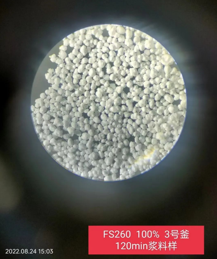 為充分驗證試用效果,阜康能源在試用過程中除了試用助分散劑外,其余配方參數(shù)保持不變;而且在每一階段助劑準備就緒后,均先進行單釜試用;同時為跟蹤產(chǎn)品質(zhì)量,對調(diào)試過程中生產(chǎn)的樹脂進行單獨打批號分開包裝,對配方優(yōu)化完畢后連續(xù)生產(chǎn)的樹脂定向發(fā)貨,跟蹤廠家使用情況。