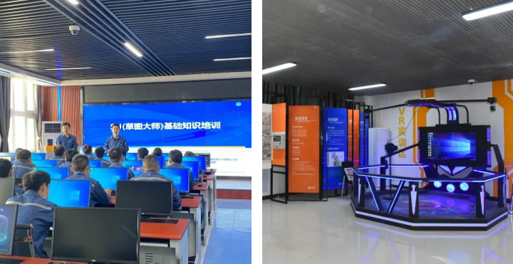 為進(jìn)一步提升員工管理與專業(yè)技能,阜康能源以智慧園區(qū)建設(shè)為契機(jī),不斷加快園區(qū)培訓(xùn)智能化建設(shè)步伐。通過3D數(shù)字化虛擬現(xiàn)實(shí)技術(shù),對(duì)數(shù)字化智慧工廠進(jìn)行更加直觀、真實(shí)的展示,讓呆板的設(shè)備資產(chǎn)配置數(shù)據(jù)更鮮活易用,提升了設(shè)備資產(chǎn)數(shù)據(jù)的可靠性、實(shí)用性。目前,3D建模小組已完成阜康能源園區(qū)整體3D建設(shè),3D建模成果被很好的應(yīng)運(yùn)用于數(shù)字化教育培訓(xùn)基地。