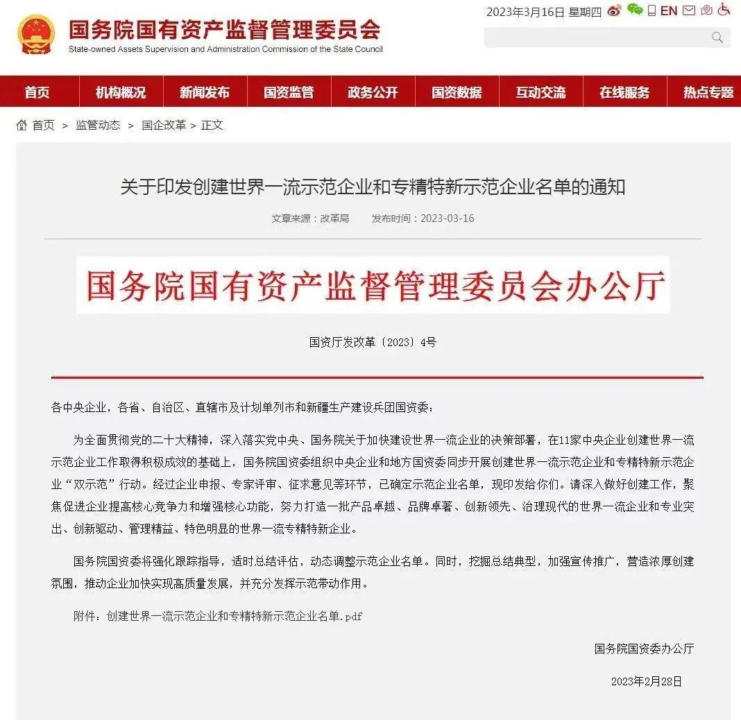 國務(wù)院國資委辦公廳公示(資料圖片)