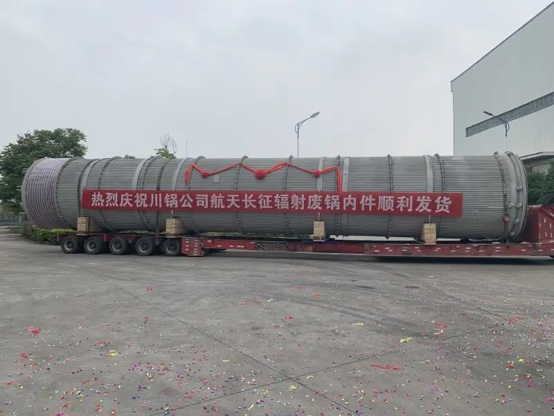 圖為3500噸航天爐輻射廢鍋內(nèi)件出廠