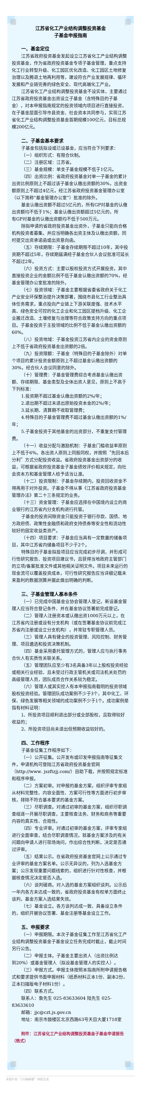 為助力化工產(chǎn)業(yè)結構調(diào)整工作,江蘇省政府投資基金將設立一支專項子基金:江蘇省化工產(chǎn)業(yè)結構調(diào)整投資基金。根據(jù)基金的設立方案制定的《江蘇省化工產(chǎn)業(yè)結構調(diào)整投資基金子基金申報指南》4月30日正式向社會公布,子基金征集工作正式啟動。