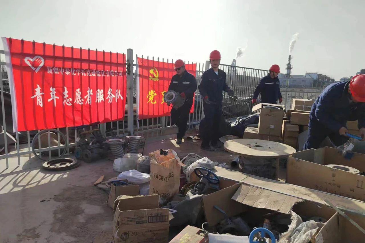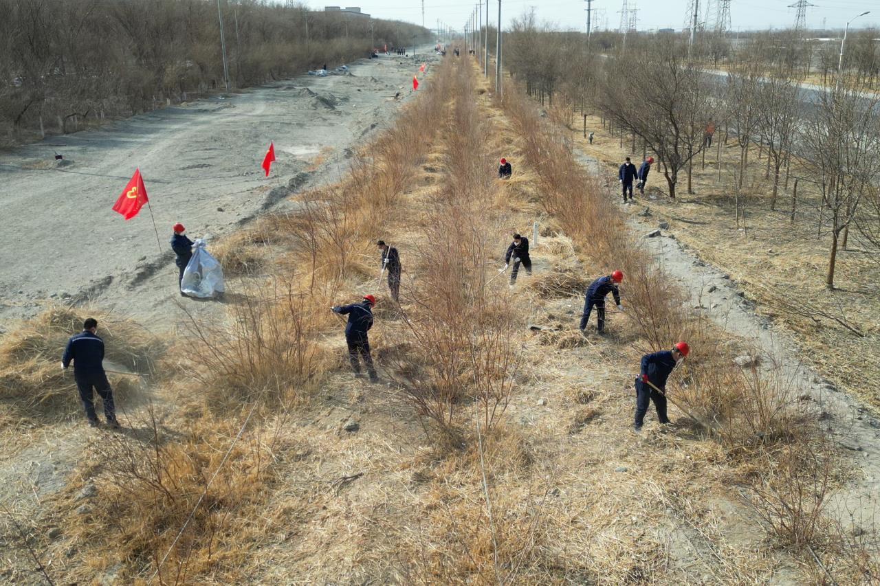 托克遜能化各分廠黨員先鋒隊、團員青年志愿服務隊,對園區(qū)綠化帶進行清理、清潔大掃除(李天祥