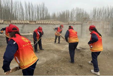 在大橋鄉(xiāng)闊納買里村第一書記和婦聯(lián)主席的帶領(lǐng)下,18名志愿者分為3組展開行動。按照老人的需求,將院內(nèi)墻角的塊煤搬至煤棚里,對庭院和牛羊圈舍進(jìn)行清掃。