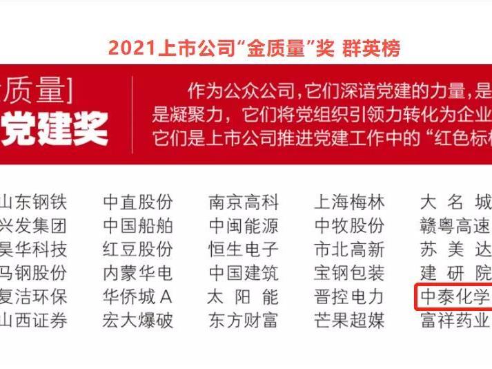 中泰化學榮獲2021上市公司“金質量”優(yōu)秀黨建獎