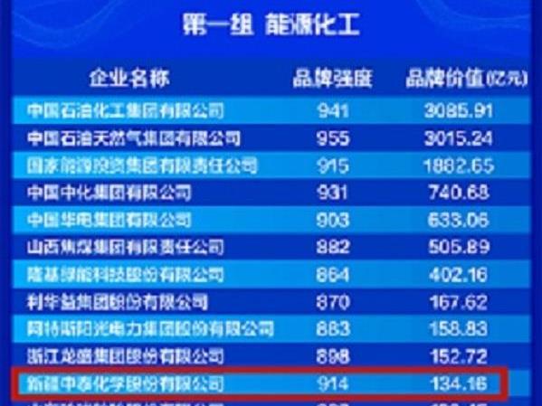 2021中國品牌價值評價榜出爐 新疆中泰化學(xué)以134.16億元品牌價值位列能源化工第11位