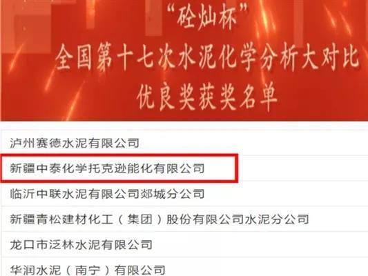 近日,國家水泥質(zhì)量監(jiān)督檢驗中心權(quán)威發(fā)布全國第十七次水泥化學(xué)分析大對比獲獎名單,新疆中泰化學(xué)托克遜能化公司(以下簡稱“托克遜能化”)榮獲全國第十七次水泥化學(xué)分析大對比“優(yōu)良單位”榮譽(yù)稱號。(圖片來源:中國水泥網(wǎng))據(jù)了解,全國水泥化學(xué)分析大對比每兩年舉行一次,代表了中國水泥行業(yè)最高標(biāo)準(zhǔn)對比賽事。此次獲獎不僅展示了公司質(zhì)量管理人員嚴(yán)謹(jǐn)?shù)墓ぷ髯黠L(fēng)、扎實的技術(shù)功底和良好的職業(yè)素養(yǎng),更樹立了良好的企業(yè)形象。