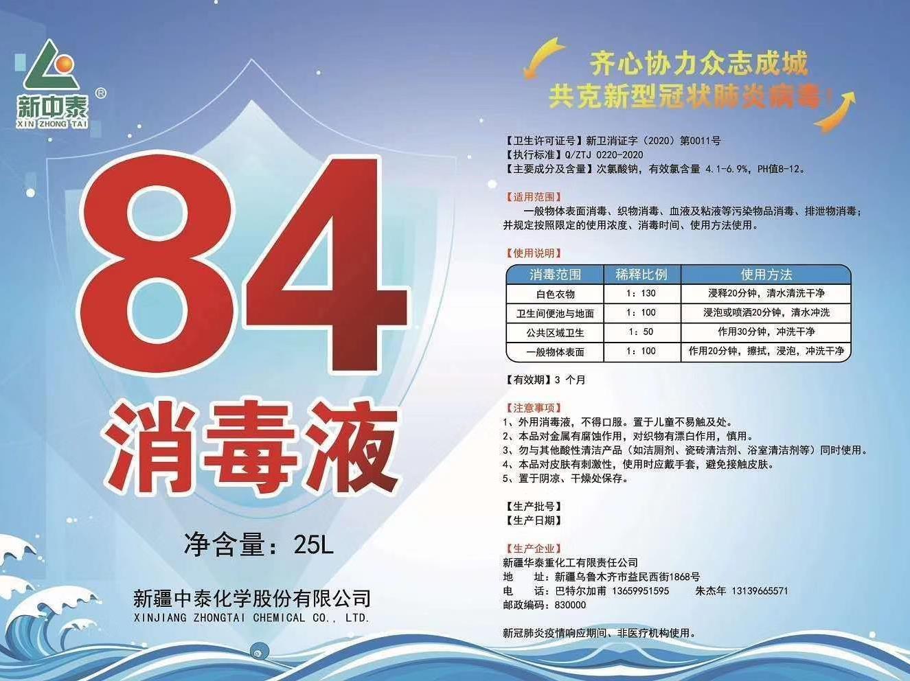 抗擊疫情中泰在行動 | 中泰化學(xué)新一代次氯酸鈉消毒液 —— “新中泰牌”84消毒液研發(fā)成功并投入生產(chǎn)供應(yīng)