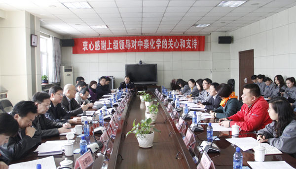 魯木齊市國稅局黨組成員、局長方健超及區(qū)、市國稅系統(tǒng)相關(guān)處室及米東區(qū)國稅局負(fù)責(zé)人到公司調(diào)研,并與中泰化學(xué)董事長王洪欣在華泰氯堿廠一樓會(huì)議室座談。