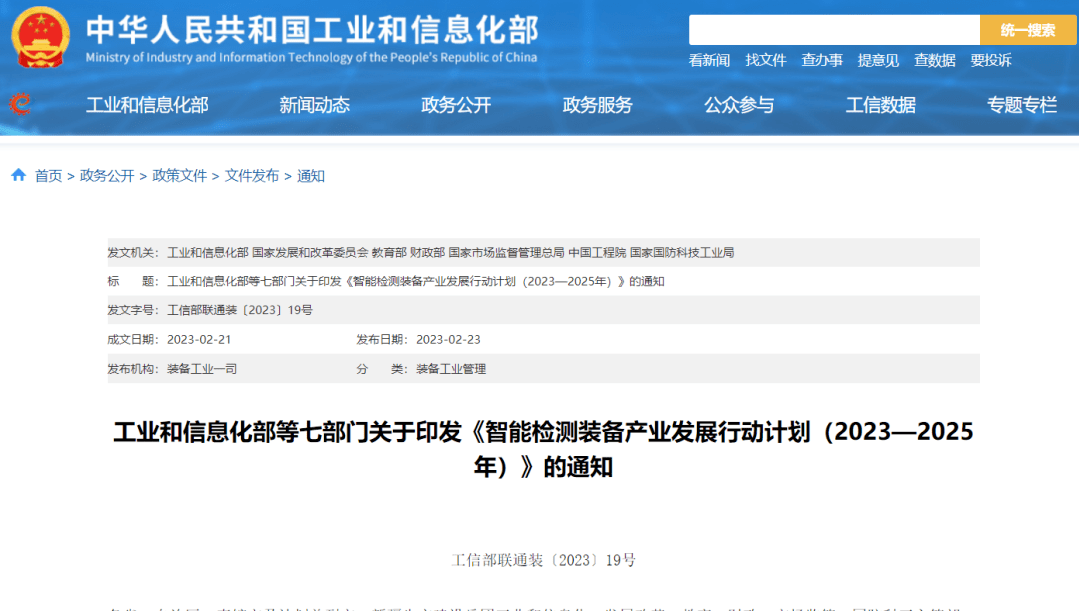 七部門聯(lián)合印發(fā)《智能檢測裝備產(chǎn)業(yè)發(fā)展行動計(jì)劃(2023—2025年)》